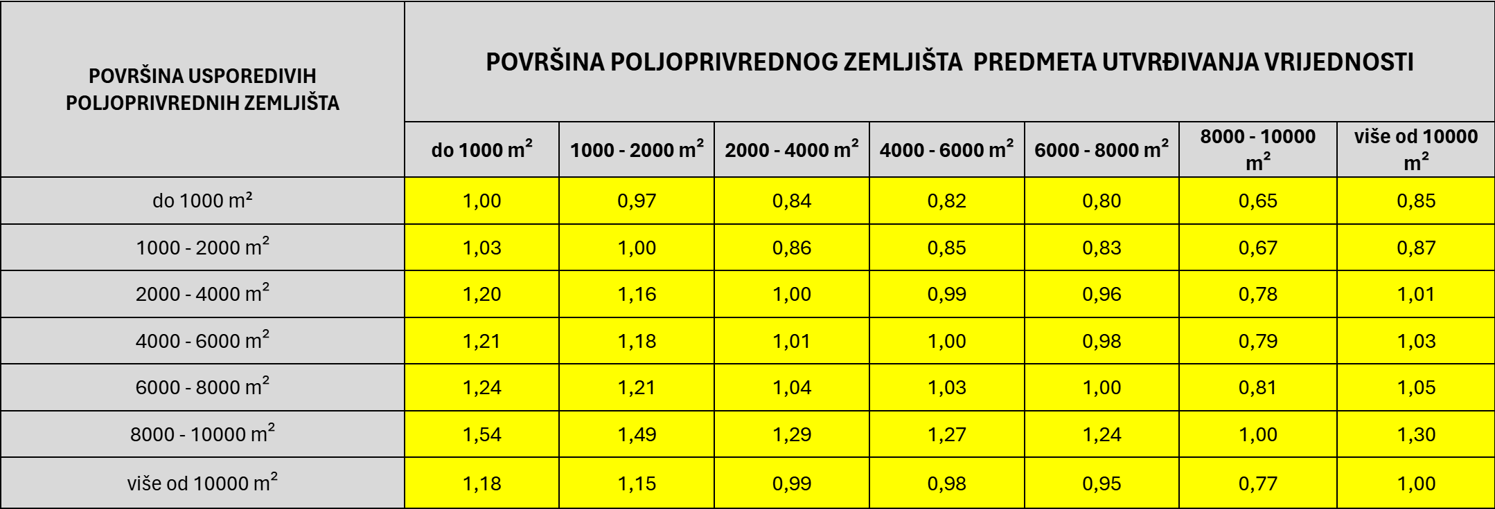 Koeficijenti za preračunavanje poljoprivrednih zemljišta se smatraju koeficijentima za preračunavanje razlika u vrijednosti drugih obilježja istovrsnih nekretnina, čije izvođenje propisuje odredba čl. 27. st. 2. Pravilnika o metodama procjene vrijednosti nekretnina („Narodne novine“, broj 105/15).