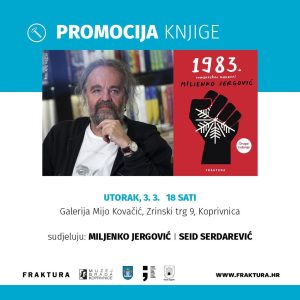 Izdavačka kuća Fraktura organizira predstavljanje knjige jednog od najvažnijih suvremenih književnika regije, Miljenka Jergovića. Promocija će se održati u utorak, 3. ožujka u 18 sati u prostoru Galerija Mijo Kovačić, Zrinski trg 9.