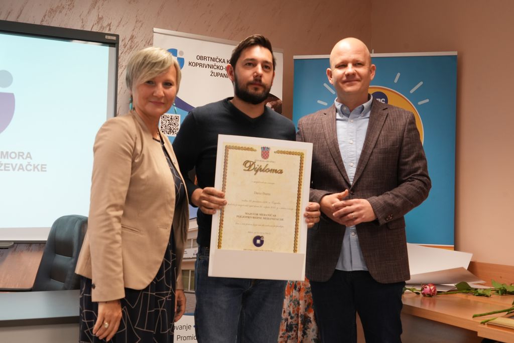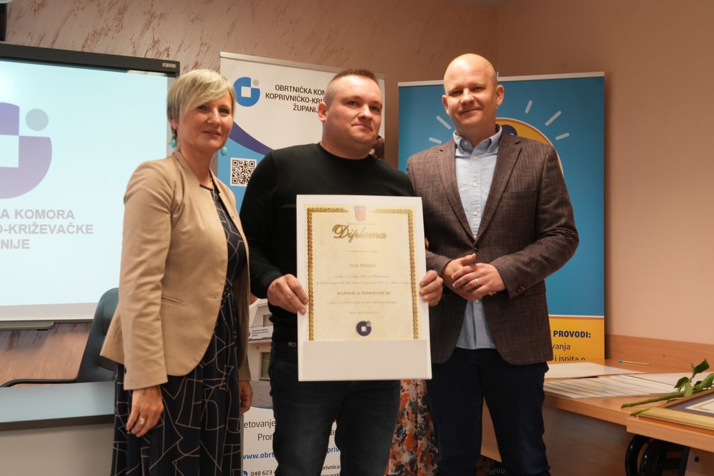 U prostorima Obrtničke komore Koprivničko-križevačke županije održana je svečanost koja je na jedinstven način povezala bogato iskustvo generacija i polet novih snaga županijskog obrtništva. Tom su prigodom uručene ukupno 33 majstorske diplome za 16 različitih zanimanja kandidatima koji su ispite položili tijekom 2024. i 2025. godine, dok su posebna priznanja dodijeljena najstarijim aktivnim obrtima, istinskim čuvarima tradicije našega kraja.