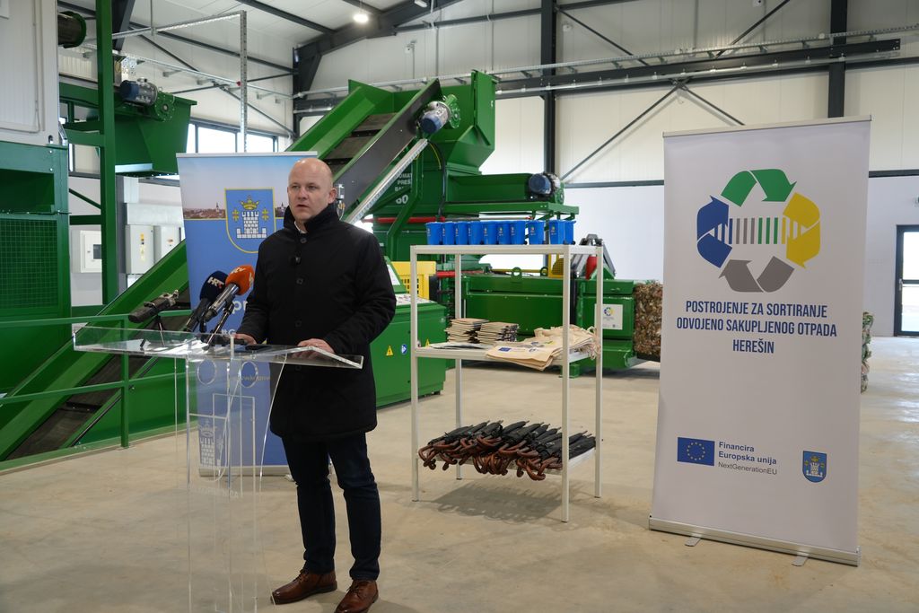 Danas, 30. prosinca, u Herešinu je održana završna konferencija projekta „Postrojenje za sortiranje odvojeno sakupljenog otpada Herešin“. Riječ je o projektu sufinanciranom sredstvima Nacionalnog plana za oporavak i otpornost 2021. – 2026., u okviru Poziva na dodjelu bespovratnih sredstava NPOO.C1.3.R2-I1.05.0004 – Izgradnja i/ili opremanje postrojenja za sortiranje odvojeno sakupljenog otpadnog papira, kartona, metala, plastike i drugih materijala.